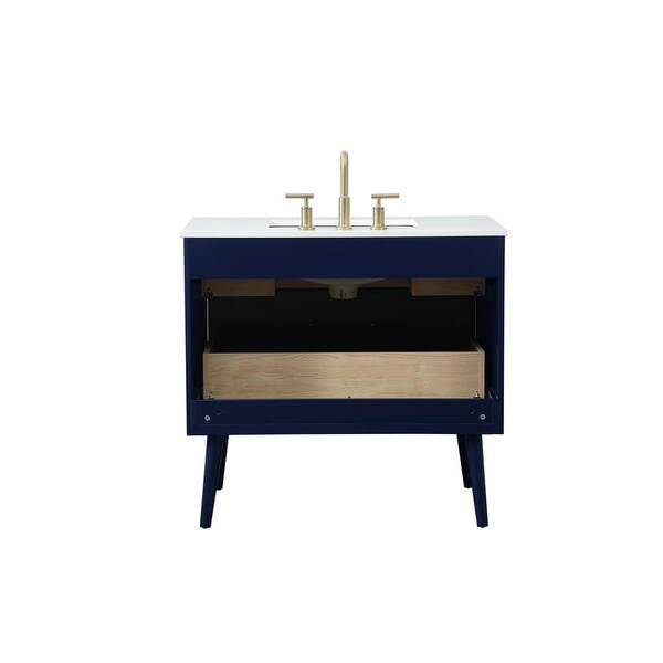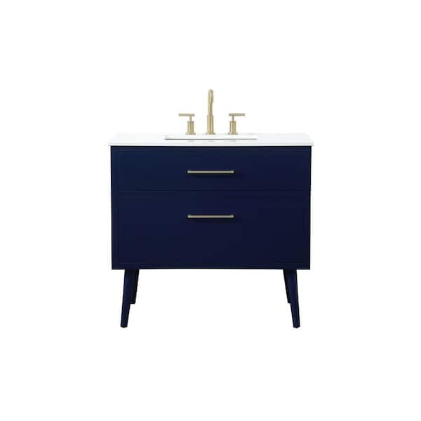 Simply Living 36 in. W x 22 in. D x 33.5 in. H Bath Vanity in Blue with Ivory White Engineered Marble Top