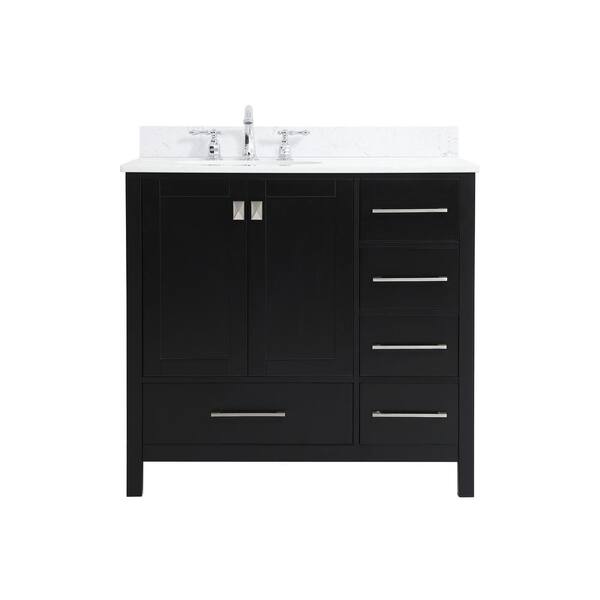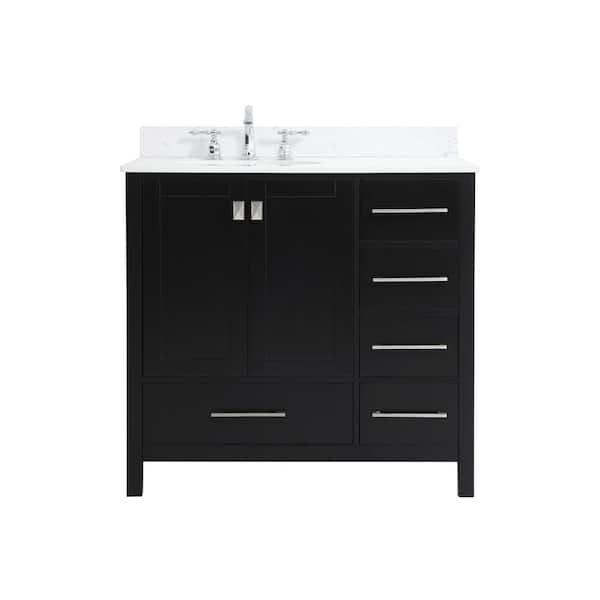 Simply Living 36 in. W x 22 in. D x 34 in. H Bath Vanity in Black with Calacatta White Engineered Marble Top