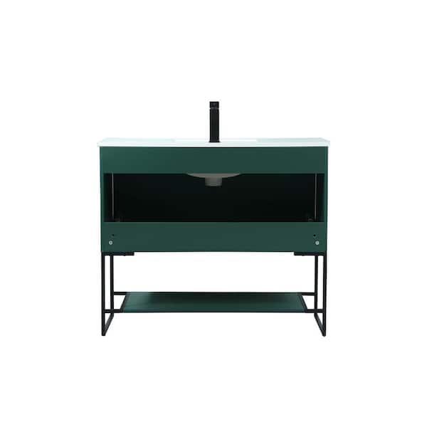 Simply Living 40 in. Single Bathroom Vanity in Green with Quartz Vanity Top in Ivory White