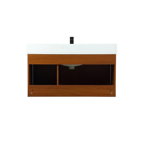 Simply Living 40 in. W x 18 in. D x 19.7 in. H Bath Vanity in Teak with Ivory White Engineered Marble Top