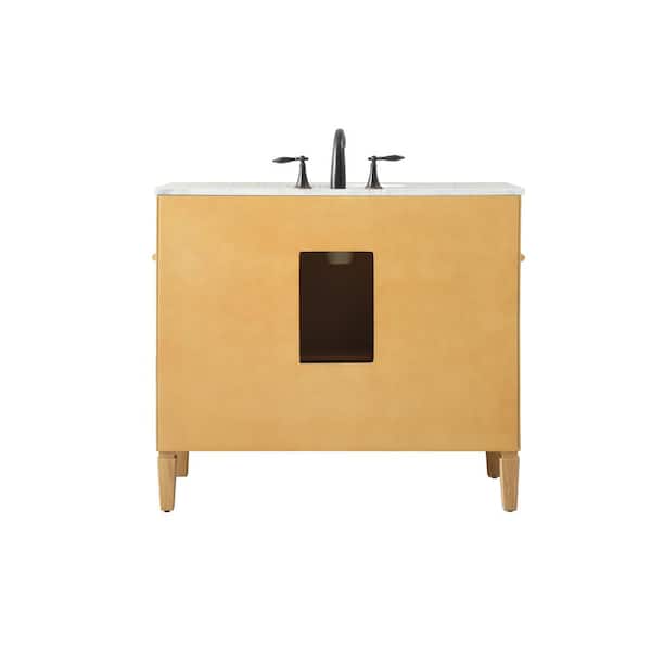 Simply Living 40 in. W x 21.5 in. D x 35 in. H Bath Vanity in Natural Wood with Carrara White Marble Top