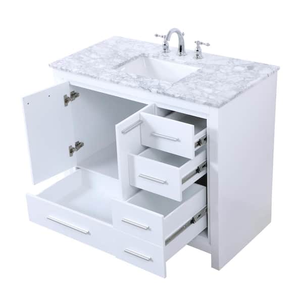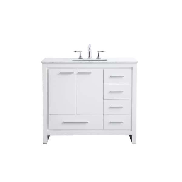 Simply Living 40 in. W x 21 in. D x 35 in. H Bath Vanity in White with Carrara White Marble Top