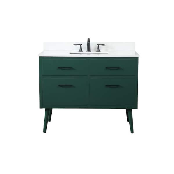 Simply Living 42 in. W x 22 in. D x 33.5 in. H Bath Vanity in Green with Ivory White Engineered Marble Top