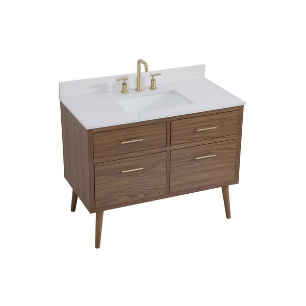 Simply Living 42 in. W x 22 in. D x 33.5 in. H Bath Vanity in Walnut Brown with Ivory White Engineered Marble Top