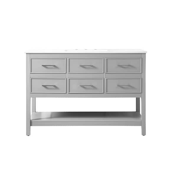Simply Living 48 in. Single Bathroom Vanity in Gray with Quartz Vanity Top in Calacatta White