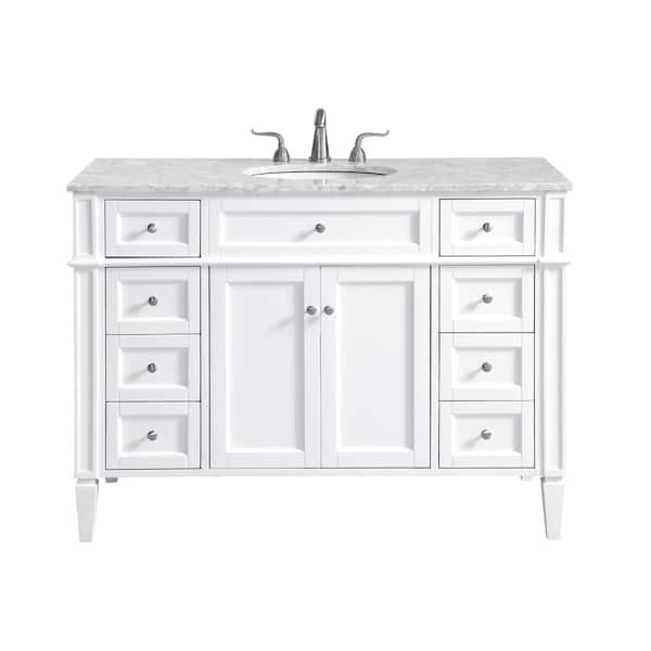 Simply Living 48 in. W x 21.5 in. D x 35 in. H Bath Vanity in White with Carrara White Marble Top