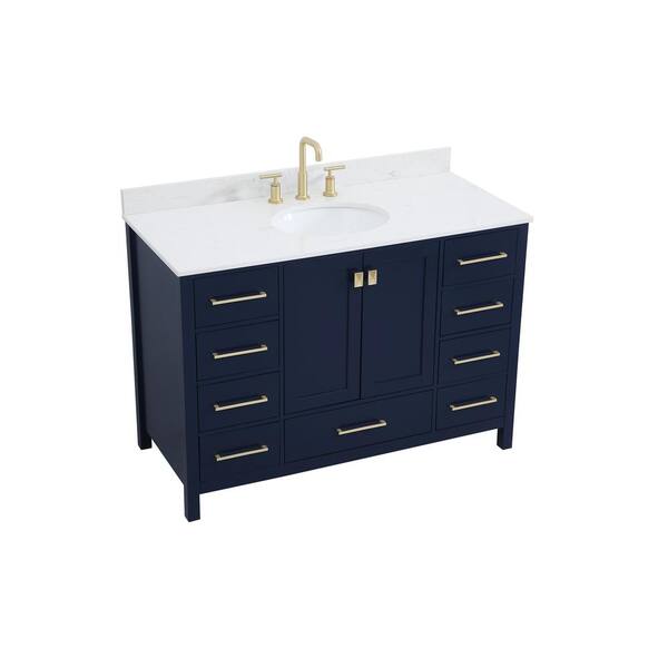 Simply Living 48 in. W x 22 in. D x 34 in. H Bath Vanity in Blue with Calacatta White Engineered Marble Top