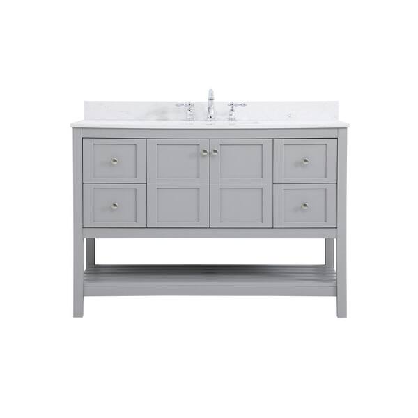 Simply Living 48 in. W x 22 in. D x 34 in. H Bath Vanity in Gray with Calacatta White Engineered Marble Top