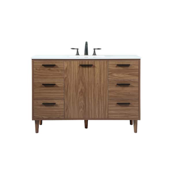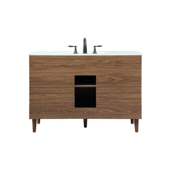 Simply Living 48 in. W x 22 in. D x 34 in. H Bath Vanity in Walnut Brown with Ivory White Engineered Marble Top