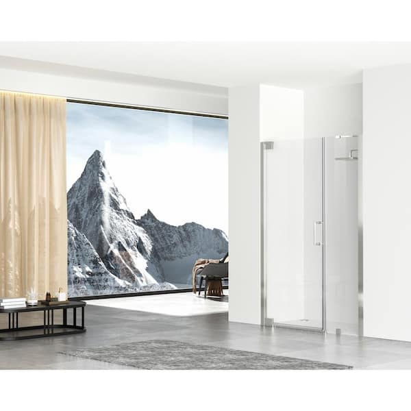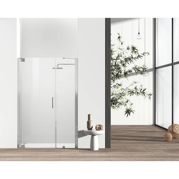 Simply Living 48 in. W x 72 in. H Semi-Frameless Hinged Shower Door in Brushed Nickel with Clear Glass