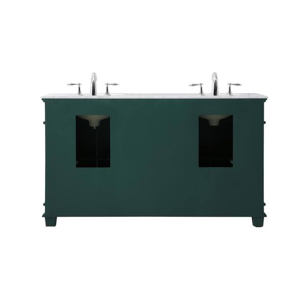 Simply Living 60 in. Double Bathroom Vanity in Green with Marble Vanity Top in Carrara White