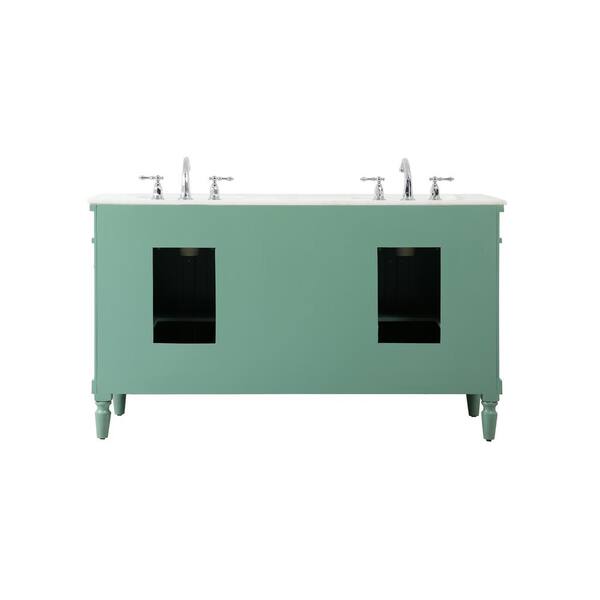 Simply Living 60 in. W x 21.5 in. D x 35 in. H Bath Vanity in Vintage Mint with White and Brown Vein Marble Top