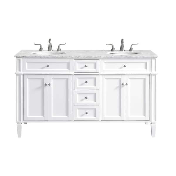 Simply Living 60 in. W x 21.5 in. D x 35 in. H Bath Vanity in White with Carrara White Marble Top