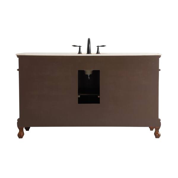 Simply Living 60 in. W x 21 in. D x 36 in. H Bath Vanity in Teak with Cream Marble Top