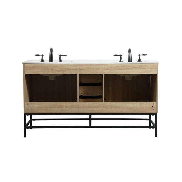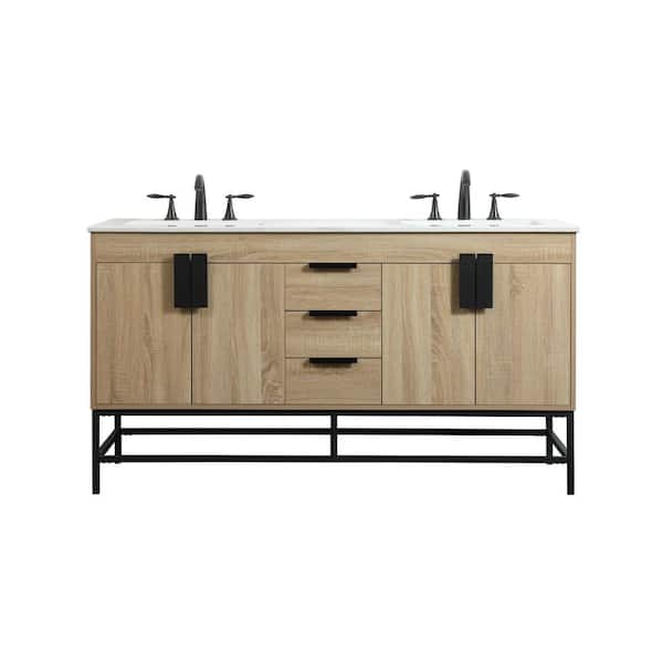 Simply Living 60 in. W x 22 in. D x 33.5 in. H Bath Vanity in Mango Wood with Ivory White Engineered Marble Top