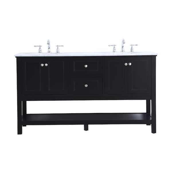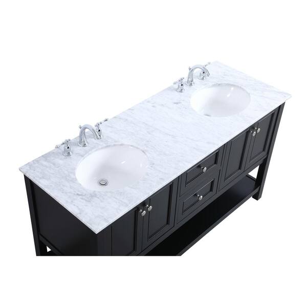Simply Living 60 in. W x 22 in. D x 33.75 in. H Bath Vanity in Black with Carrara White Marble Top