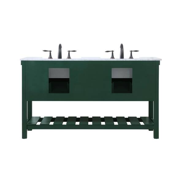 Simply Living 60 in. W x 22 in. D x 34.125 in. H Bath Vanity in Green with Carrara White Marble Top