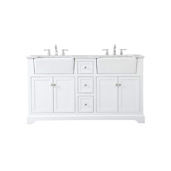 Simply Living 60 in. W x 22 in. D x 34.75 in. H Bath Vanity in White with Carrara White Marble Top