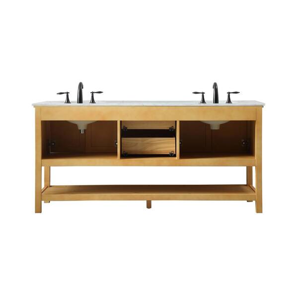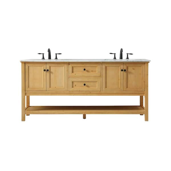 Simply Living 72 in. W x 22 in. D x 34 in. H Bath Vanity in Natural Wood with Carrara White Marble Top