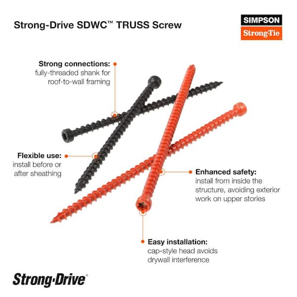 0.155 in. x 4-1/2 in. Black E-Coat T30 6-Lobe, Truss Head, Strong-Drive SDWC Truss Screw (50-Pack)