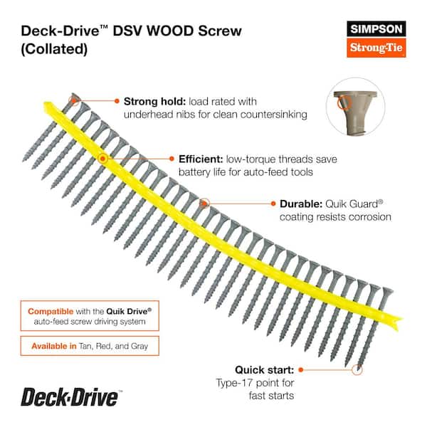 • Collated tan screws for fast and consistent deck installation