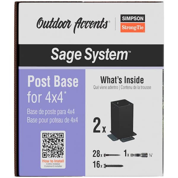 Outdoor Accents Sage System Black Powder-Coated Post Base for 4x4 with Screws (2-Pack)