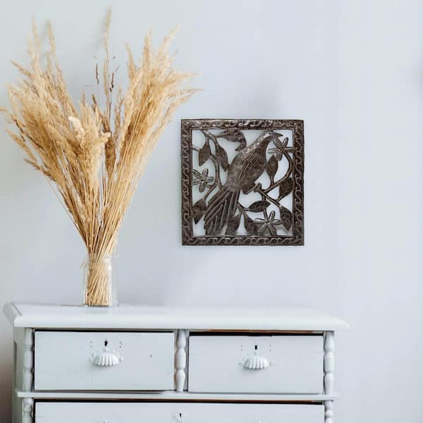Single Bird Ringed Haitian Steel Drum Square Wall Art