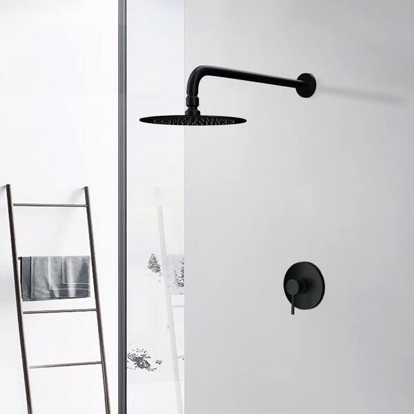 Single Handle 1-Spray 10 in. Shower Faucet 1.8 GPM with High Pressure in. Matte Black (Valve Included)