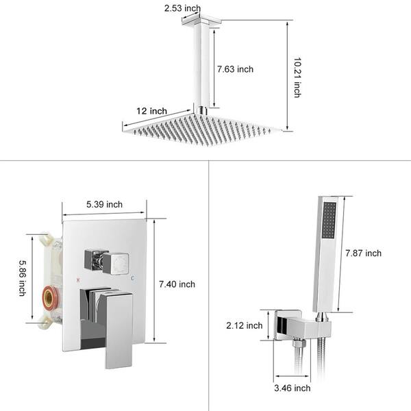 Single Handle 1 -Spray 12 in. Shower Faucet 1.8 GPM with Pressure Balance Ceiling Mount Shower System in Polished Chrome