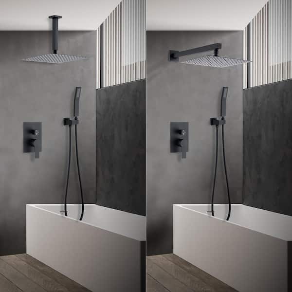 Single Handle 1-Spray 12 in. Square Shower Faucet with Handheld Shower in Matte Black (Valve Included)