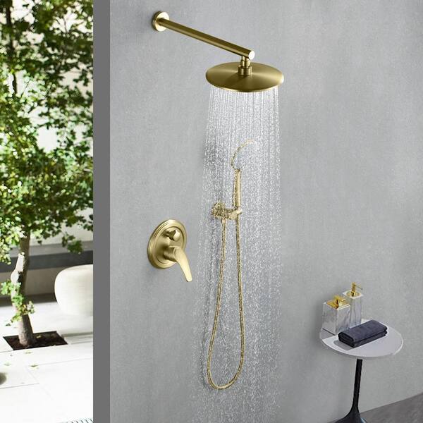 Single Handle 1-Spray 9in. Round Shower Faucet 1.5 GPM with Pressure Balance in. Brushed Gold(Valve Included)