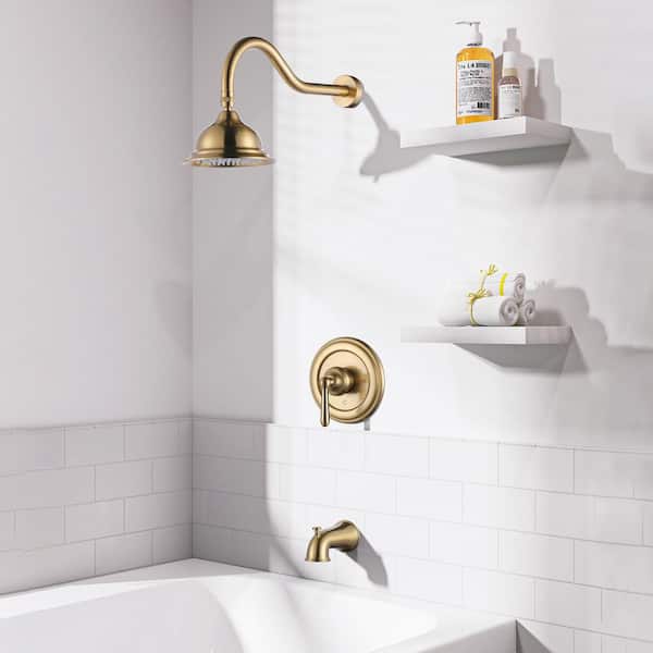 Single Handle 1-Spray Tub and Shower Faucet 1.8 GPM with Brass Rough-in. Valve Included in Gold