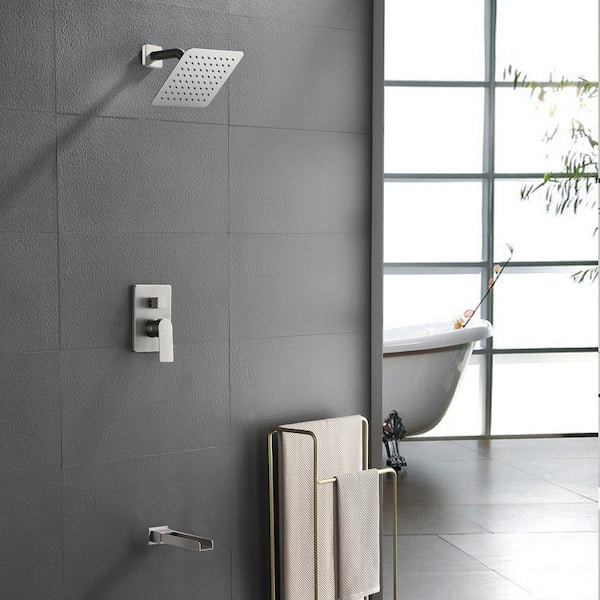 Single Handle 1-Spray Tub and Shower Faucet 1.8 GPM with Pressure Balance in. Brushed Nickel (Valve Included)