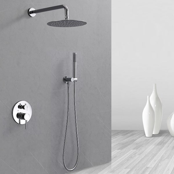 Single Handle 2-Spray Shower Faucet 2 GPM with Drip Free Wall Mount 10 in. Head Shower with Hand Shower in Chrome
