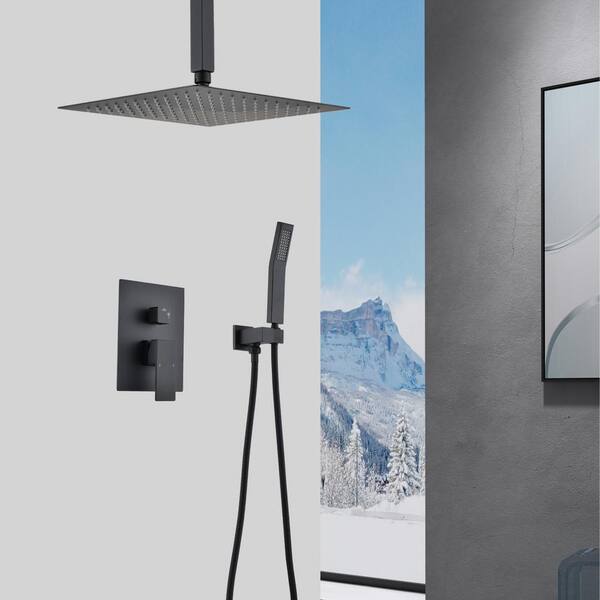 Single Handle 2-Spray Shower Faucet, Ceilin.g Mount Rainfall 10 in. Shower Set, 2.2 GPM with Drip Free in Matte Black
