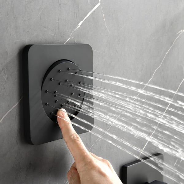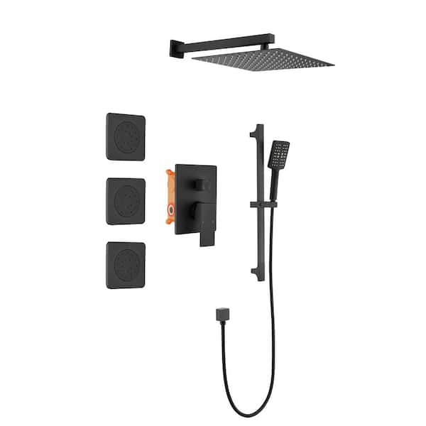 Single Handle 3-Spray Square Shower Faucet 2 GPM with High Pressure and 3-Body Spray in Matte Black