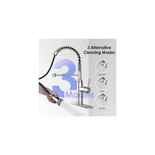 Single Handle 5. 12in Brushed Nickel Spring Pull Down Kitchen Faucet 3 Mode Sprayer 360° Rotation Deck Mount