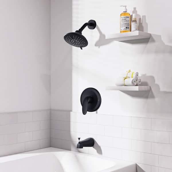 Single-Handle 5-Spray Settings Shower Faucet 1.8 GPM with Adjustable Head and Tub Spout in Matte Black (Valve Included)