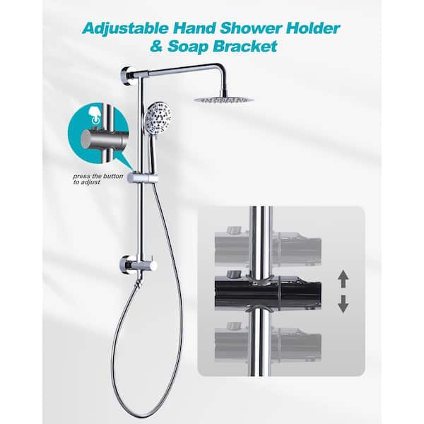 Single Handle 7 Spray Patterns Wall Mounted Shower Faucet with Hand Shower 1.8 GPM with Polished Chrome