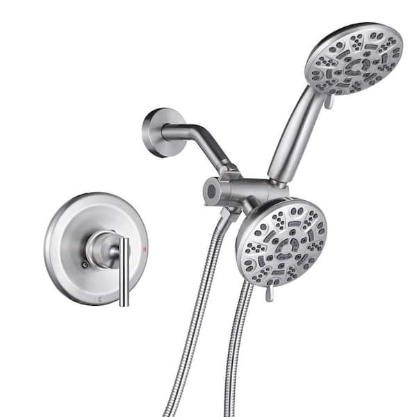 Single-Handle 7 -Spray Shower Faucet 1.8 GPM with Dual Shower Adjustable Heads in Brushed Nickel (Valve Included)