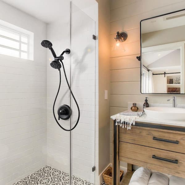 Single-Handle 7-Spray Shower Faucet 1.8 GPM with Dual Shower Adjustable Heads in Matte Black (Valve Included)