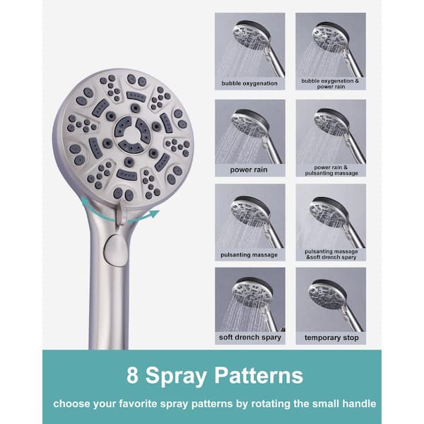 Single Handle 8-Spray Shower Faucet 1.8 GPM with Handheld Shower and Tub Spout High Pressure in. Brushed Nickel