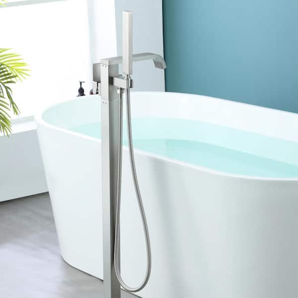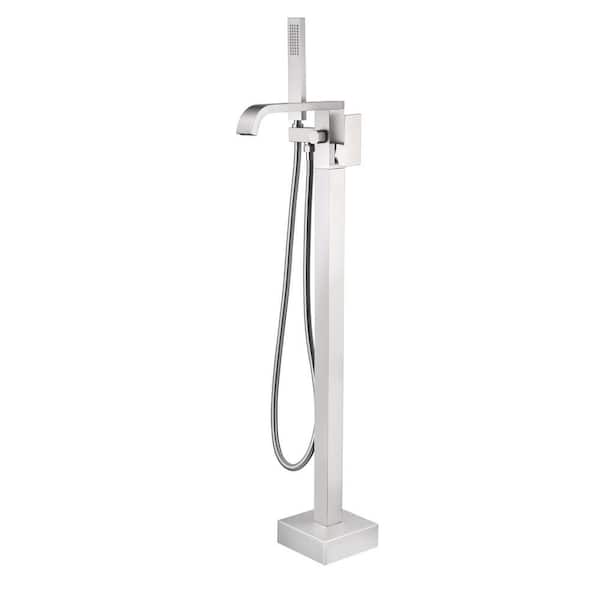 Single-Handle Claw Foot Freestanding Tub Faucet with Hand Shower, Waterfall Bathtub Spout in Brushed Nickel