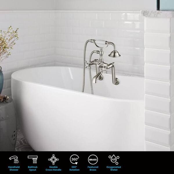 Single-Handle Claw Foot Tub Faucet with 6 in. Center Adjustable Swing Arms Tub Mount Short Adapter in. Brushed Nickel