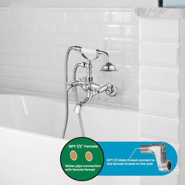 Single-Handle Claw Foot Tub Faucet with 6 in. Center Adjustable Swing Arms Tub Mount Short Adapter in. Polished Chrome