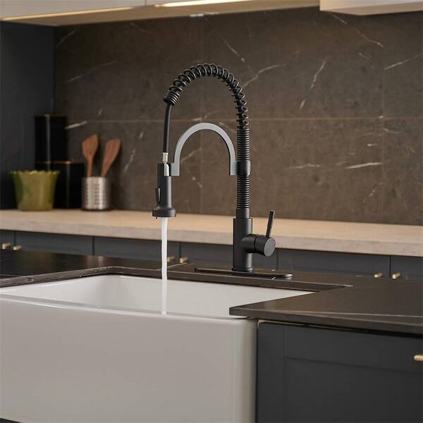 Single Handle Commercial Pull Down Sprayer Kitchen Faucet with Advanced Spray, Pull Out Spray Wand in Matte Black