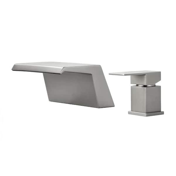 Single-Handle Deck-Mount Roman Tub Faucet Waterfall Modern Brass Bathroom Bathtub Filler in Brushed Nickel