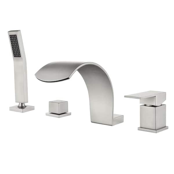 Single-Handle Deck-Mount Roman Tub Faucet with Waterfall and Hand Shower in. Brushed Nickel