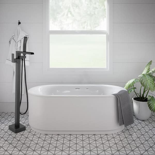 Single Handle Freestanding Bathtub Faucet with Hand Shower in Matte Black