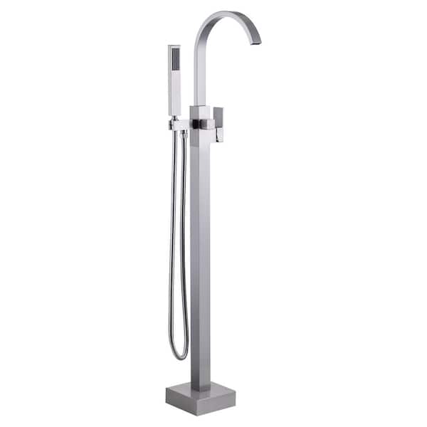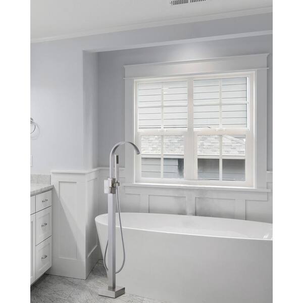 Single-Handle Freestanding Tub Faucet with Hand Shower in Brushed Nickel